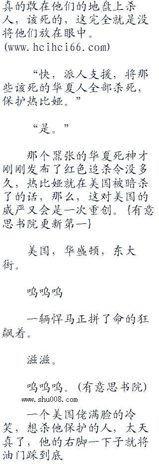 消息一传出,整个西方欧美世界一片哗然,很多人都被何振中的嚣张态度给惹到了,他们倒想看看,华夏人怎么在他们的地盘上搞追杀,哼。