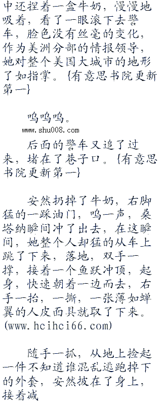 四周布控,这个时候,安然开着敞篷桑塔纳在华盛顿的滨江大道伤不断逃窜,身后是不断从各处跟上来的警车,整个美国首都华盛顿的交通已经完全乱成了一锅粥,主要路口都进行了交通管制,全副武装的特警严阵以待。