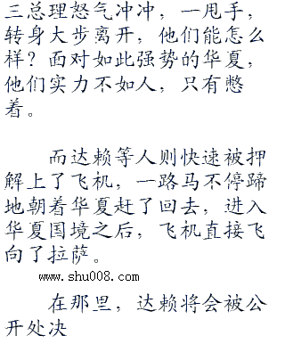 **已经没有再吼了,满脸的死灰之色,像是一条死狗一样被拖着走。在这个逃亡了几十年了,制造指挥了大量打砸抢烧,不断挑起华夏西藏民族问题的**我脸上再也没了半点儿以前的嚣张和得意之色。