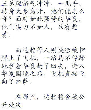 因为,他知道,他所一直主张的西藏分裂企图彻底覆灭了,再也没有任何的机会。曾经,他们渴望像是蒙古一样,在苏联和美国的压力下,让华夏屈服,从而使的西**立,可现在呢?美国,俄罗斯均不是华夏的对手了,他们能有什么希望?