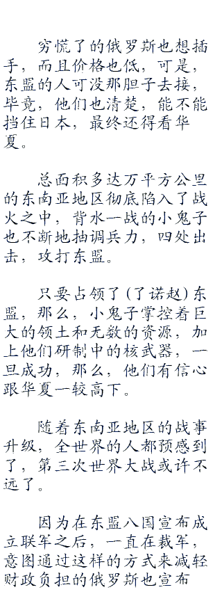 而此刻,他们也不得不接受这个事实,现在的华夏已经团结一致了,当等到华夏处理完内部的事情,肯定会对着全世界露出其狰狞的爪牙,将华夏民族曾经遭受的耻辱十倍,百倍的奉还,将华夏民族曾经被迫丢失的东西一点一点地拿回来。