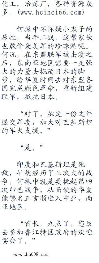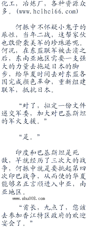 东盟和日本开战的另一个好处就是,现在华夏无战争,随着国内清理的深入进行,环境宽松而和平,在东南亚地区的无数企业都在朝着华夏搬迁,以期获得保护。而同时,东盟各国的资产不断地低价变卖给华夏,以换取华夏的武器装备。