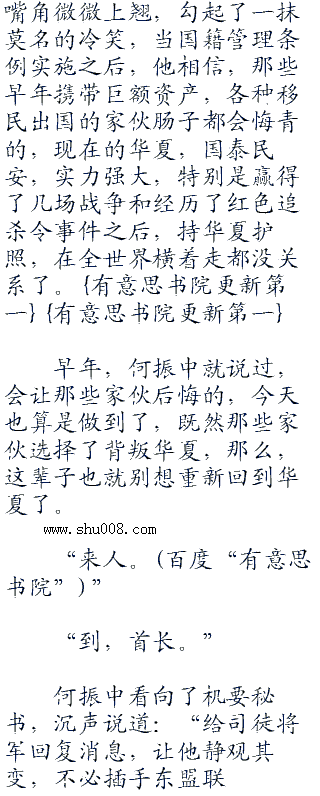 很快,何振中就拟定了一份关于加强华夏国籍控制的文件,直接递交给了华夏最高首长。他知道,审议通过是肯定的,因为,华夏能够渡过这么五千年来的风风雨雨,靠的就是民族的团结,绝不能让外人扰乱了华夏。