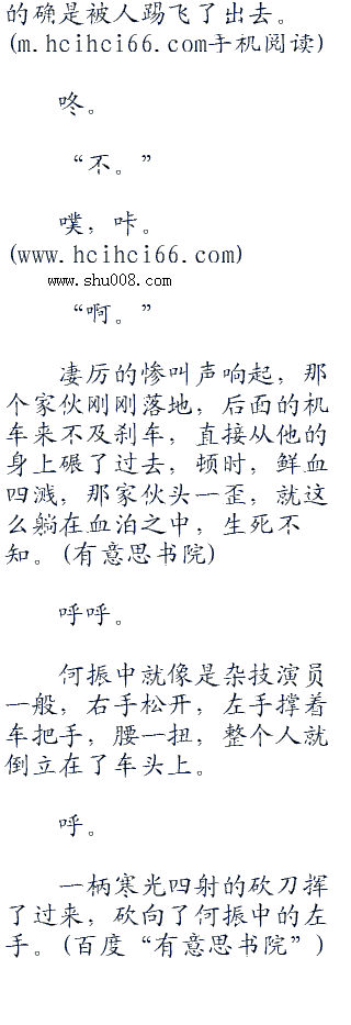 飞车党的家伙都是单手捏着油门,空下来的左手都提起了一把明晃晃的砍刀,不断地挥舞着,嘴里还在呜呜的怪叫着,显得很兴奋。