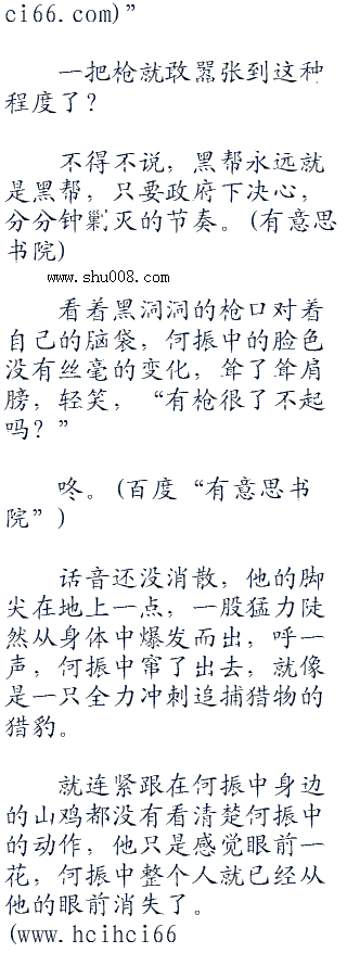 山鸡瞪大着眼睛,直盯着何振中,甚至连含在嘴里的烟都忘了抽,他有些不明白何振中的意思。