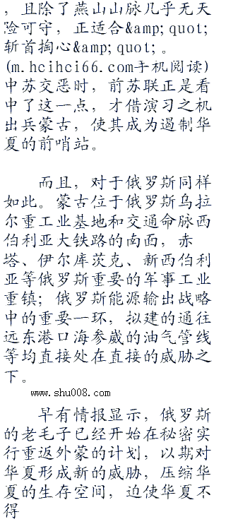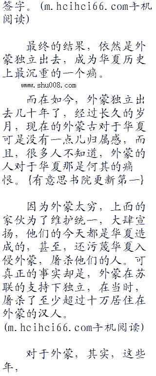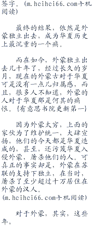 当年,斯大林强占华夏的唐努乌梁海、整个黑瞎子岛、迫使外蒙古脱离华夏独立,甚至,美、英两国在未通知华夏以及其他盟国之下,于月日与苏联签定涉及外蒙古以及华夏主权的《雅尔塔协定》(又称“雅尔塔密约”),其中就有规定:“外蒙(蒙古人民共和国)的现状应予保持。首发”