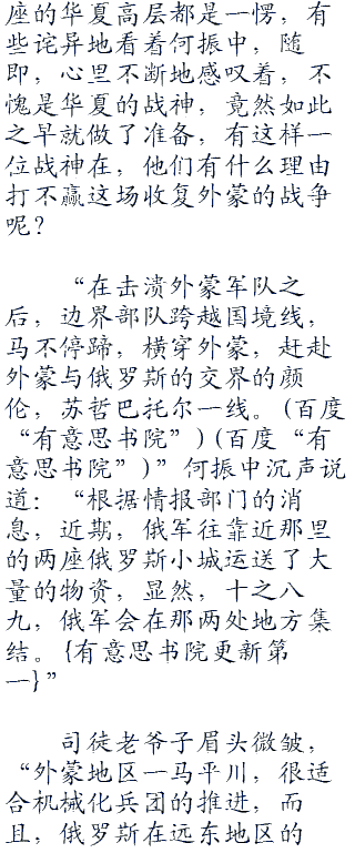 所以,华夏更要拿下外蒙,如此地广人稀,很适合迁徙人数众多的华夏。首发