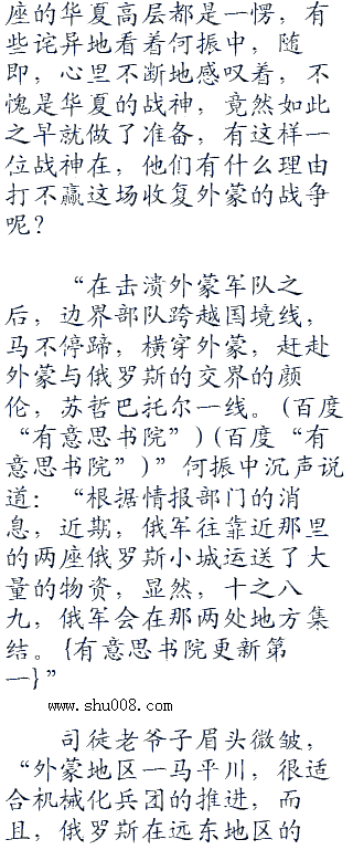 “那处理完后,立刻回国,这次收复外蒙的战役,依然由你指挥。”