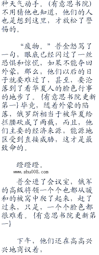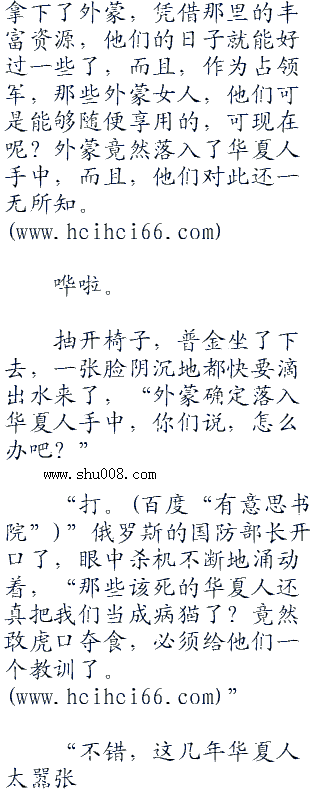 而现在,华夏强势的可怕,所以,他们才会决定先下手为强,将外蒙掌控在手中,以对华夏形成全面的威胁,可是,这家伙竟然告诉他,外蒙竟然落入了华夏手中?这就好比,看上了一个女人,正准备动手去抢,可是还没出手,半路就杀出个横刀夺爱的,这怎么能让普金不恼羞成怒?