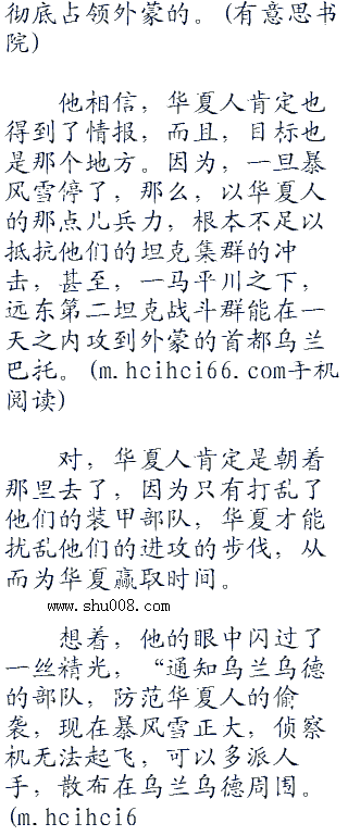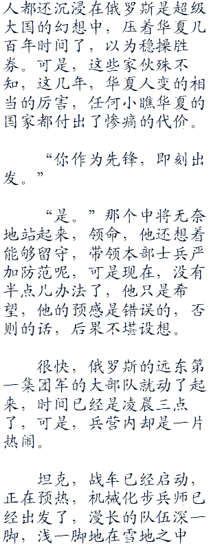 最主要的是,远东第二坦克战斗群在那里集结,准备在暴风雪停下之后,就长驱直入外蒙,