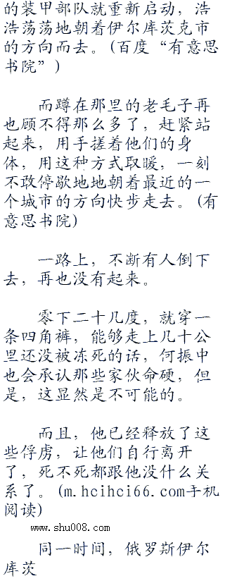 何振中看着蹲在雪地之中的老毛子俘虏,想了想,这才说道:“跑了半天,又打了仗,看他们热的身上都冒烟了,我们华夏一向善良,就帮他们脱了衣服,免得他们热坏了。.”