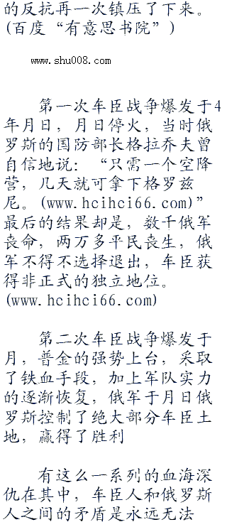 车臣和俄罗斯人的矛盾可以说是不可调和的了。