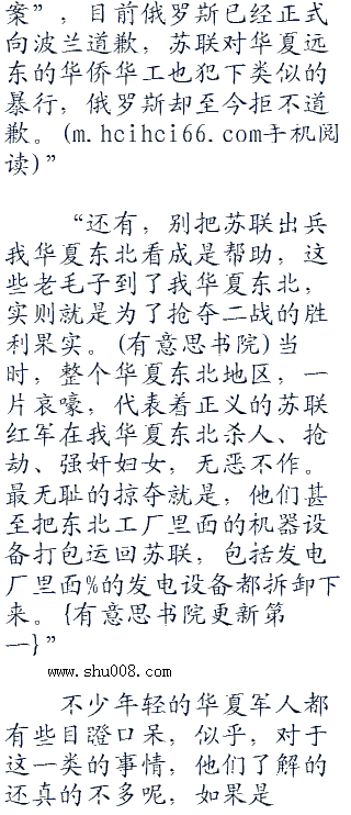 “以前不说了,就拿二战时候来讲,因为苏联要讨好日本,所以,远东地区超过三十万的华夏华侨惨招迫害与屠杀,或许很多人都不知道,但这是真实发生的事情。苏联对波兰犯下了“卡廷森林惨<div class="divimage"><div class="divimage"><div class="divimage"><div class="divimage"><div class="divimage">
