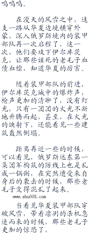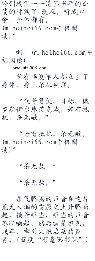 何振中的目光一一扫过那一张张被冻的通红的脸,看着那些坚定的眼神,他抬手一指其前方,沉声说道:“我华夏,被那些老毛子欺辱了几百年的时间,被侵占了几百万平方公里的土地,今天,我们来了,也要让那些老毛子尝一尝被侵略,被屠杀的滋味儿。。w ..”
