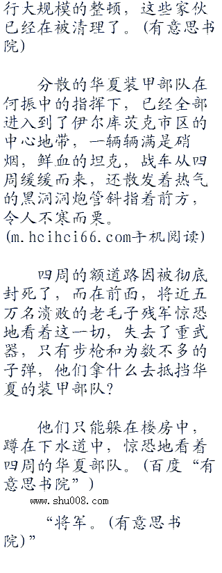 几乎没有遇到什么像样的抵抗,何振中带领的装甲部队就突破进了伊尔库茨克城中,随即便以连为单位,在这座俄罗斯中西伯利亚第二大的城市中横冲直撞,追击着溃散的俄军士兵。