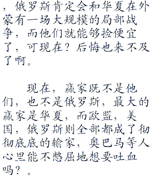 普金抬头,环视了一圈,满嘴苦涩,他也不想啊,他心里也憋屈啊,可是,有什么办法呢?远东集团军打的过华夏吗?唐努乌梁海虽然重要,可是跟乌克兰相比,就真的是小巫见大巫了,欧洲部分才是俄罗斯的发源地,那里才是他们的根基所在。