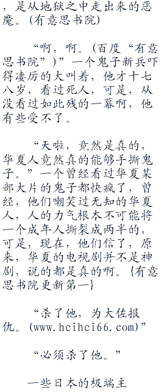 “想杀我,凭你,也配?”何振中看着那个小鬼子因为缺氧而变得青紫的脸,不屑地说道:“我说过,没人可以肆意杀害华人,所以,你必须死。”