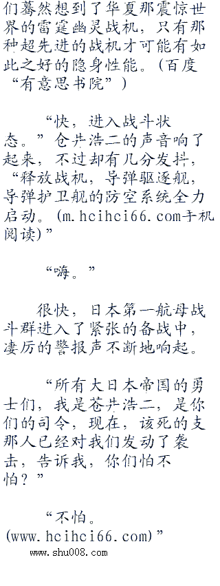 还在进行战斗阵型的转变,刚刚重新集结的日本舰队也发现了如狼群般桀骜不逊,向自己奔腾而来的华夏的战机,惊讶,胆怯,害怕,以及种种不可思议的情愫,一下子涌进了日本人的脑海里,他们做梦都不会想到,华夏人的机群竟然已经接近了他们的舰队。w.ww..co.m