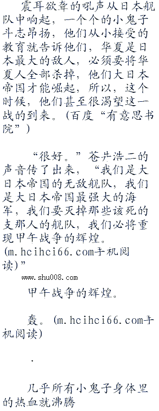 而今天,双方的海军舰队再一次相遇,这是百万华夏海军军人上百年来的梦想,堂堂正正,击败日本,亲手了结日本,用小鬼子的鲜血洗刷华夏民族身上的的耻辱。