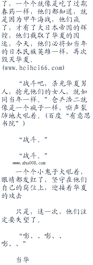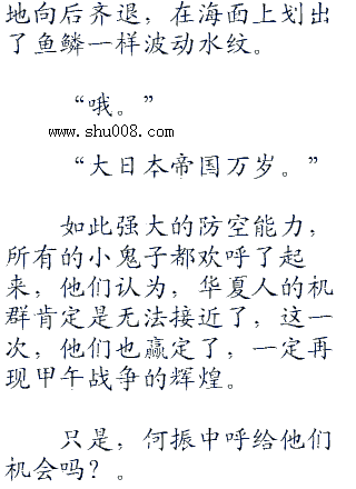 可是,就在这个如诗如画一般的环境下,一场浩瀚天际的海战去爆发了。华夏和日本,这一对宿敌在异国他乡的海面上蓦然相遇,继续着这两个民族延续了上千年的交往与战争,仇恨与掠夺。谁都知道,中华民族与日本鬼子之间的战斗将会永远进行下去,直到其中一个民族最终灭亡,或者被完全征服。