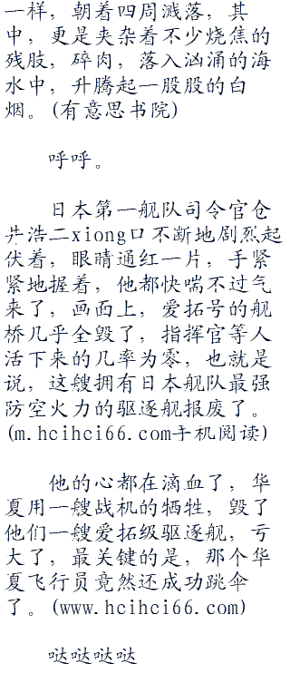 鬼子的航母在转向,在逃窜,无法释放战机,驱逐舰,护卫舰拼了命地释放拦截导弹,近卫密集阵防空系统掀起了一阵阵的金属风暴,顽强地抵抗着。