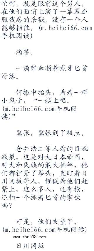 顿时,仓井浩二等一群鬼子高层一个个脸色大变,虽然知道死神很猛,可是,他们绝对没想到过竟然厉害到了这种地步啊,那个死神竟然杀光了铃谷号上的日本战士?