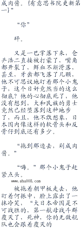 覆灭日本最强的第一航母战斗群的并不是华夏,而是一群吓破了胆子的日奸,那些怕死的小鬼子举起了屠刀,朝着他们身边的同伴挥去,再一次用无数的鲜血和生命证明了,内部争斗永远比外部争斗更加的残忍,血腥。