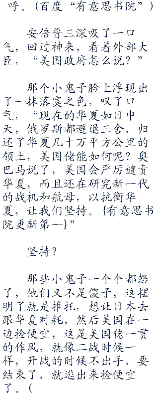 不仅不能报复,而且还要想方设法付出代价让华夏不要对日本全面出手,这,怎么能让安倍晋三心里不憋屈呢?这就好比,别人上了你的老婆,你非但不能杀人,还要给对方钱财,让对方舒舒服服的离开,这个世界还有比这更让人憋屈的事情了吗?<div class="divimage"><div class="divimage"><div class="divimage"><div class="divimage"><div class="divimage">