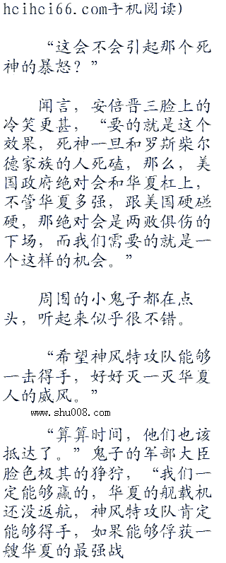 安倍晋三恨啊,华夏人其实这就是不宣而战,直接对他们最强的舰队下了黑手,以他们以前的脾气,直接就要跟华夏开战,可是,现在,他们真的没这个胆子啊。反而,他知道,他还必须稳住华夏,为日本争取时间,否则,华夏的钢铁洪流席卷而来,那才是真的完蛋了。
