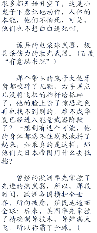 那个鬼子大佐抬头,这一瞬间,时间仿佛静止了一样,爆炸声,纷飞的导弹和防空炮弹都从他的眼中消失了,他的眼中只剩下两条胳膊粗细的蓝色<div class="divimage"><div class="divimage"><div class="divimage"><div class="divimage"><div class="divimage">