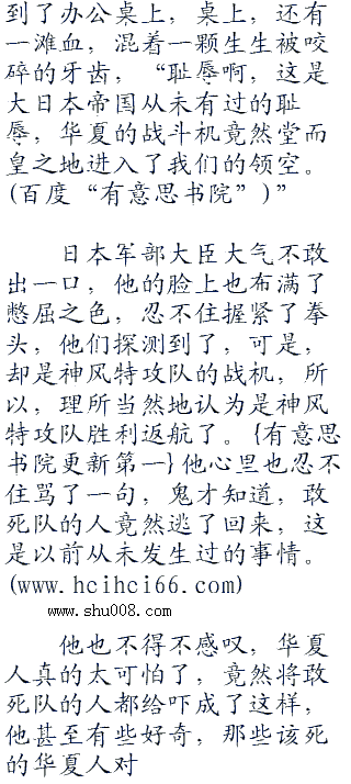 没有小鬼子知道发生了什么,在他们想来,神风特攻队的人都是不怕死的,可现在,不怕死的勇士竟然被吓破了胆子,太逃命?他们不知道,那些神风特攻队的勇士到底经历了什么。