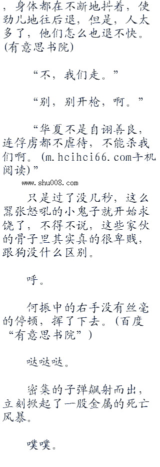 流畅的子弹声响起,泥土被打的飞溅,那些美国佬被吓的一个个脸色发白,不断地后退,惊恐地大叫着,前面的人撞到了后面的人,然后,整个现场一片人仰马翻。