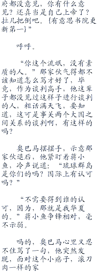 华夏大使馆的会议室中,带着人气势汹汹来兴师问罪的奥巴马真的快忍不住了,心里早就在骂娘了,这些该死的华夏人竟然就把他们晾在这里?草,难道忘了几年前,美国说一,华夏不敢说二的事情了吗?