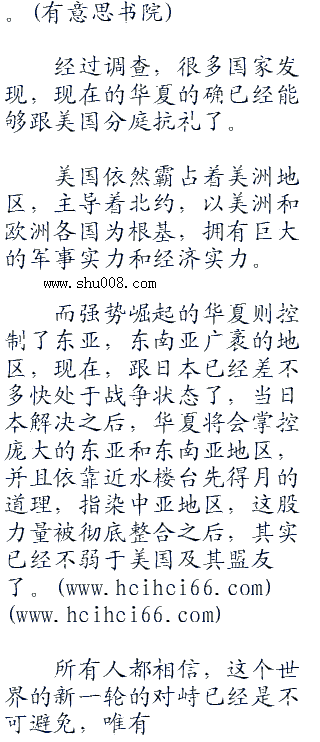 虽然,很多国家都预料到了华夏和美国肯定是水火不相容的,因为,无论是最开始越南战争还是后来的半岛战争,华夏都和美国直接干上了,而后,美国更是被迫将塞班岛割让给了华夏,可以说,美国的霸主地位就是这么生生地被华夏给磨掉了。