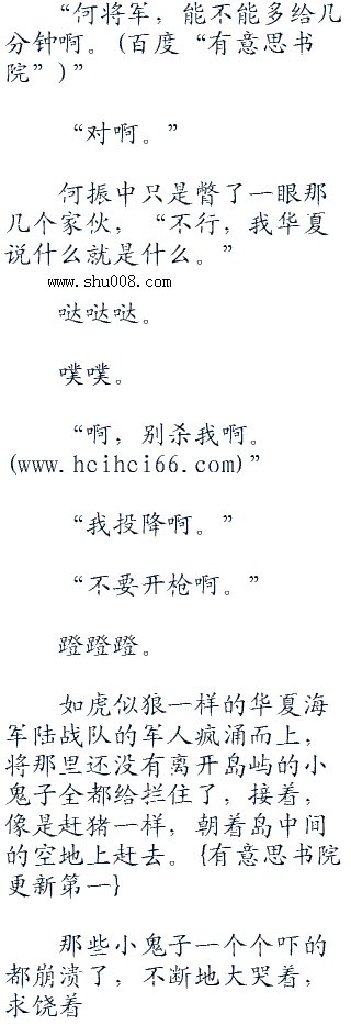 何振中点了点头,转身,看了一眼,虽然大部分鬼子都撤离了出去,但是,依然还有些人没有乘上船,还在岛上。