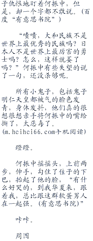 那些小鬼子男人受不了,一个个满脸狰狞,怨毒地盯着何振中,纷纷大声地骂了起来。