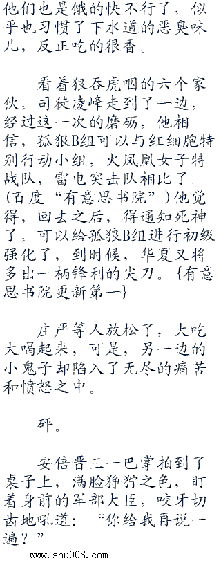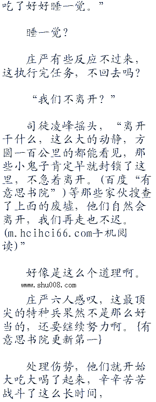 走了一百多米,司徒凌峰就出现了,看着庄严六人都回来了,他那原本冷漠的脸色也缓和了一些,只是,他不太习惯表达出来而已,只是点点头,“那边有吃的,喝的,伞兵,老炮,帮他们将手接上。”