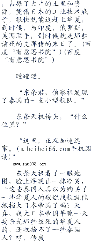 随着汽轮的轰鸣声,海天相接的地方,一排的小黑点儿出现了,几分钟后,日本鬼子的狗皮膏药旗出现在了视线之中,随着海风,不断地飘动着,猎猎作响。