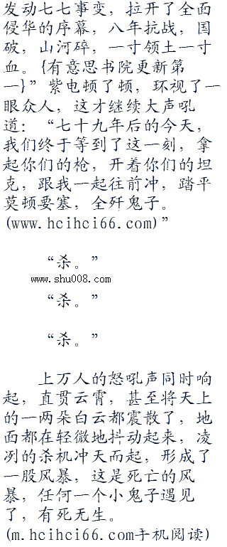 看着下面突然发生的变故,所有在阵地上的小鬼子都有些没反应过来,怎么,突然就变成了这样?他们的一群长官就像是猪一样,就被杀了个一干二净。