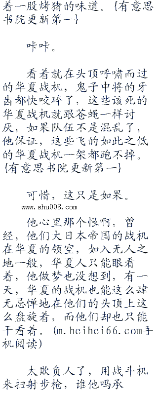 小鬼子的机枪手咬着牙,对天开枪,企图用这样的方式击落该死的华夏战机,可是,除了浪费子弹,他们连华夏战机的一根毛都没打下来。