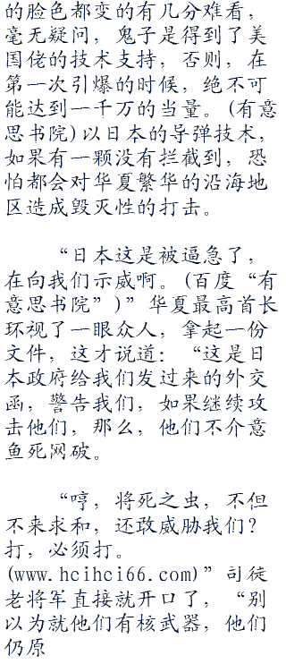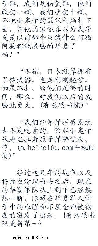 安倍晋三拳头一握,环视了一眼四周的鬼子军政高层,这才一个字一个字地说道:“那些该死的华夏人咄咄逼人,欺人太甚,那就别怪我们不客气了,通知下去,将我们的核武器引爆,让那些家伙看一看。”