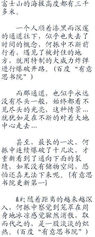何振中嘴角微微上翘,这是一件好事儿,说明下面是通的,不过,这也正常,毕竟,鬼子眼中的这座神山可是一座不折不扣的活火山。