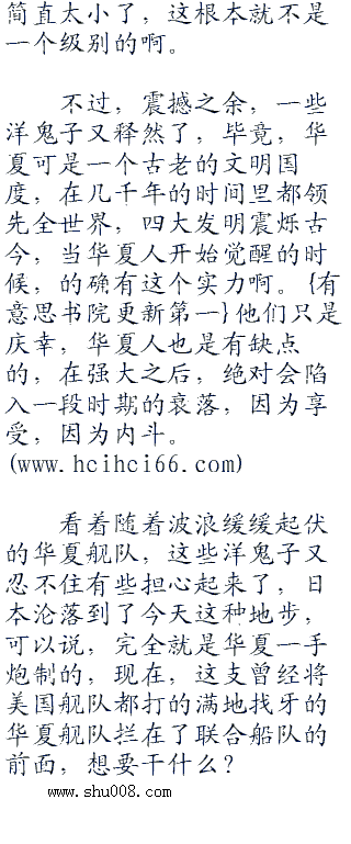 一些懂的中文的洋鬼子立刻看清了那支舰队的军旗名,脸色全都变的难看到了极点,竟然是华夏人的舰队,该死。