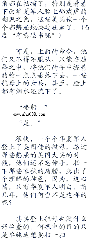 看着那些家伙快要吐血的脸色,何振中的脸上始终带着一丝冷笑,当年,列强依靠坚船利炮,强行打破华夏国门的时候,华夏人就是这样的屈辱和无奈吧。无论是老毛子还是美国佬,在这个世界都横行霸道习惯了,现在,这种滋味儿很难受吧。