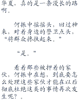 何振中的目的就是要通过这样的强硬手段,让每一个华夏人都发生蜕变,而不仅仅是处理一些直接的责任人,因为,那样是治标不治本的。