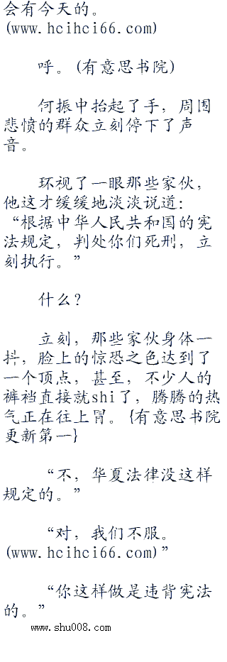 “法治社会吗?”何振中脸上露出了一抹冷笑,盯着他,淡淡地说道:“违法的时候,你怎么不跟我**?现在来跟我扯法律,是不是太迟了一点儿呢?自己做不到的事情,别要求别人也做不到,懂吗?”