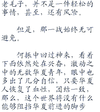 “说这些话,并不是责怪你们,我知道,造成这样的局面是很多因素的复合作用,甚至,我华夏的年青一代也是某种教育体制或者其他东西的牺牲品。我只是希望你们都能够记住,不管怎么样,至少,我们不应该因此而忘记很多东西,须知,忘记过去就意味着背叛,背叛的不是一段历史,而是我们整个中华民族的魂魄和精神。”
