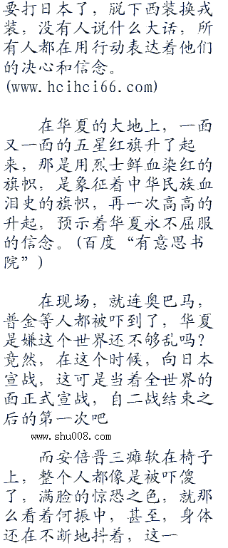 突然,在华夏的大地上,响起了嘹亮的国歌,从冰冷的东北到一望无垠的北疆隔壁,从青草油油的外蒙到碧波荡漾的南沙群岛,激昂的声音在整片华夏大地上飘扬着,清晰地传入了每一个华夏人的耳中。