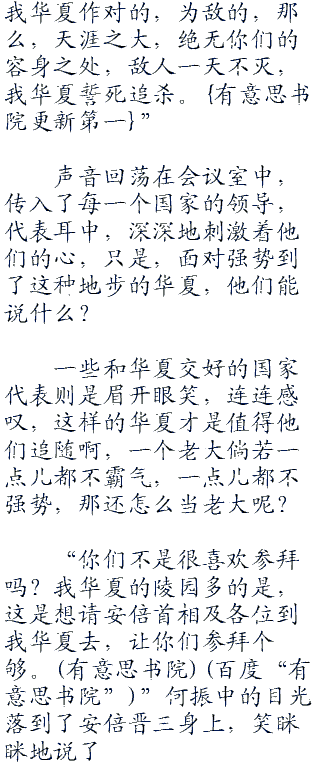 看着台上傲然而立,满脸冷色的何振中,安倍晋三牙齿都快咬碎了,他知道,华夏和日本之间不会有什么缓和的余地的,如果可以,他宁愿选择投降,跪地求饶,可是,华夏人会给他机会吗?