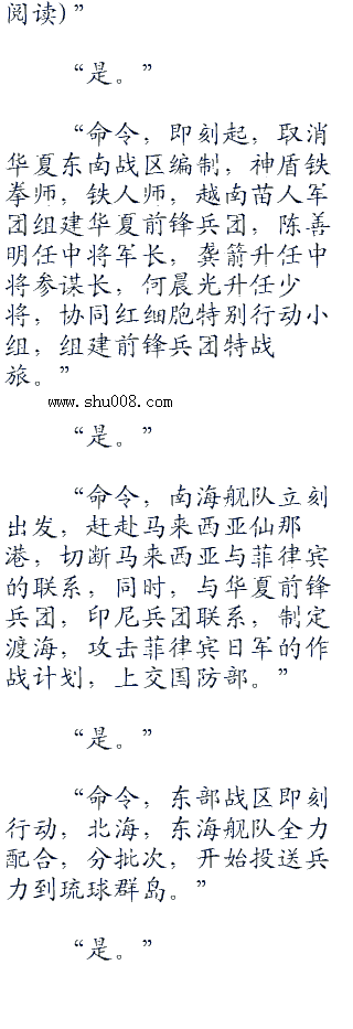 “必不负所托,自当竭尽全力,剿灭所有窥觑我华夏的宵小之辈,重现我泱泱华夏的绝世雄风,让红星红旗在世界的每一个角落升起。.co.m”